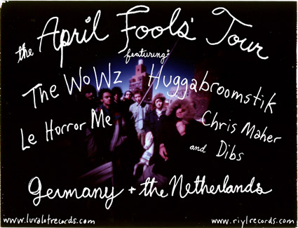 This April, Recommended If You Like Records' THE WOWZ and CHRIS MAHER will join Luv-A-Lot Records' Huggabroomstik and Dibs and Berlin-based songwriter Le Horror Me for the APRIL FOOLS' TOUR which will head through Germany and the Netherlands. Here's the full Fools' itinerary: